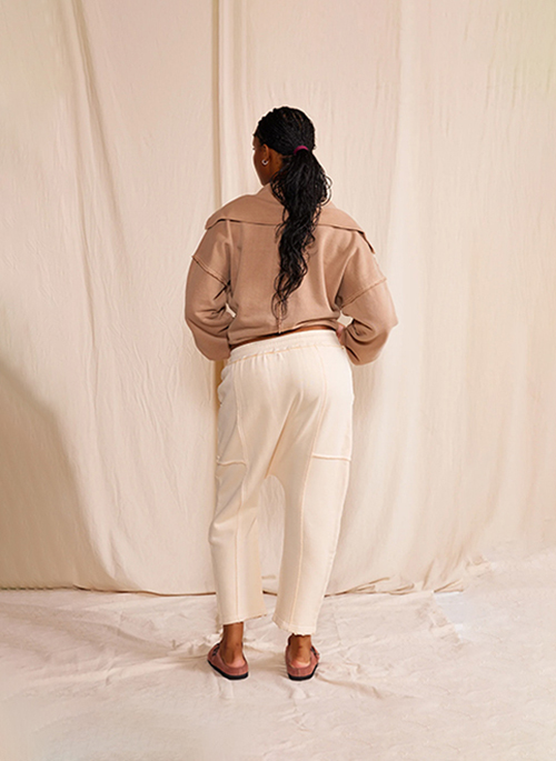 100% Organic Cotton Introducing the "Ryanne Sweatshirt," a cozy essential that marries comfort with contemporary style. Crafted from 100% organic cotton, this sweatshirt features a relaxed fit and a flattering deep V-neckline, offering a fresh take on traditional loungewear. Its unique design showcases raw edges and playful stitching, creating an effortlessly chic aesthetic that stands out in any wardrobe. Perfect for layering over your favorite tank or wearing alone for a casual day out, this versatile piece is destined to become your go-to favorite. Elevate your everyday look with the Ryanne Sweatshirt, where eco-friendly fashion meets modern flair!Details: