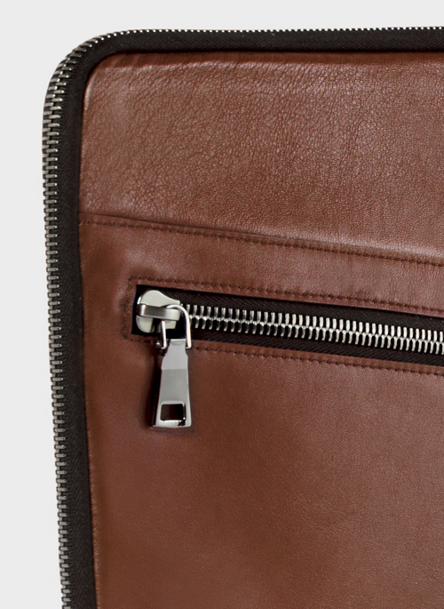 The elegant metal zipper closure, which slides smoothly along two sides of the case, ensures the laptop's protection.