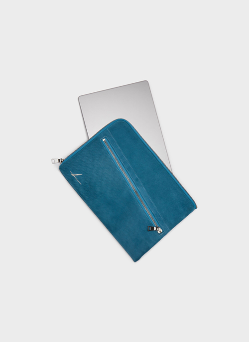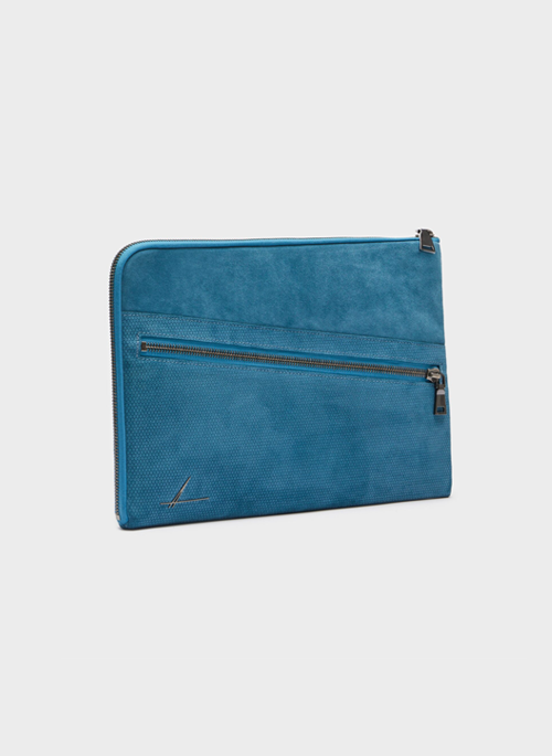 The Sharp laptop case, crafted from sophisticated Vesuvio leather, is an accessory that complements the wearer's style and personality.