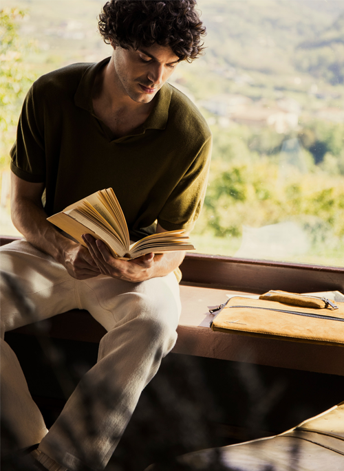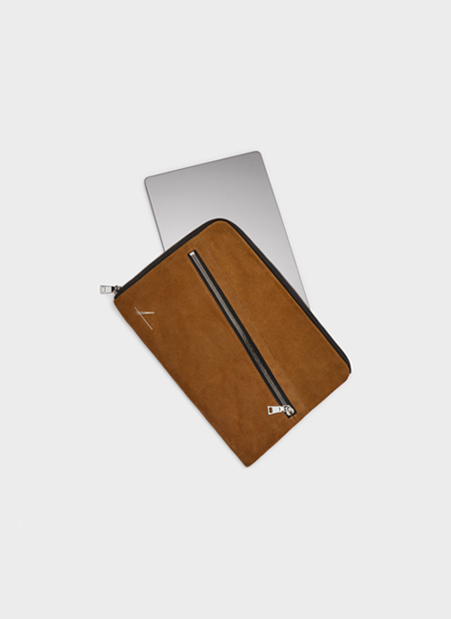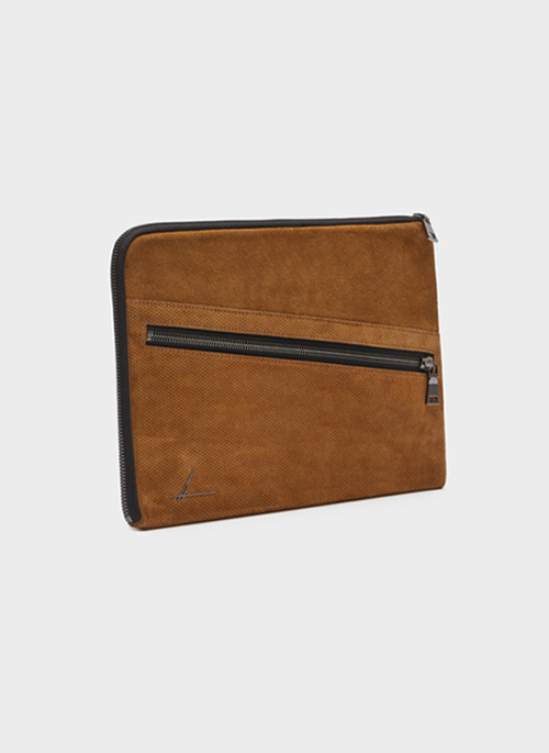 The Sharp laptop case, crafted from sophisticated Vesuvio leather, is an accessory that complements the wearer's style and personality.