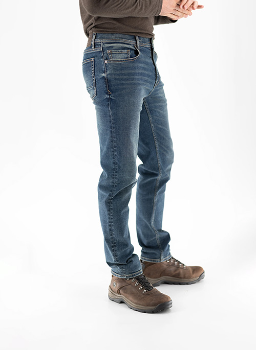 - Five pocket construction. Zip fly.