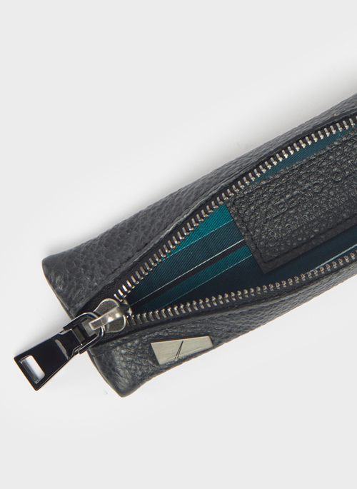 The Spindly pencil case, crafted from captivating ocean leather and embellished with the Alberto Olivero monogram in brass, is designed as a refined desk accessory.