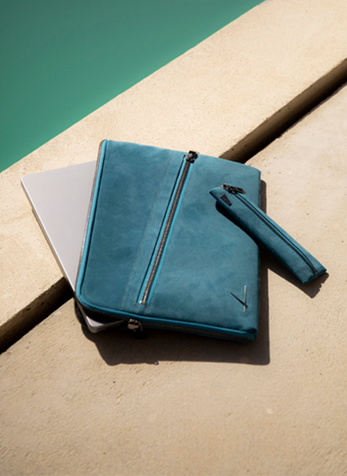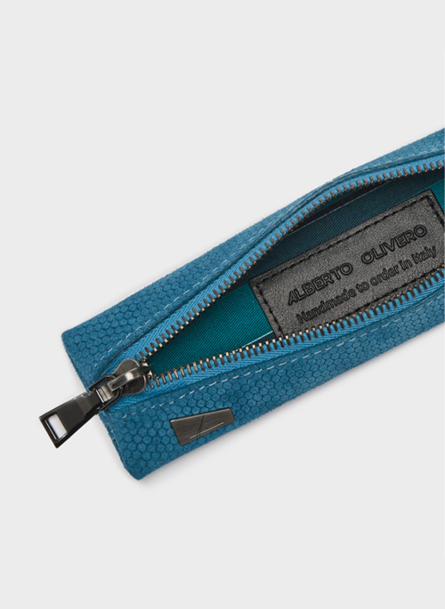 The Spindly pencil case, crafted from sophisticated Vesuvio leather and embellished with the Alberto Olivero monogram in brass, is designed as a refined desk accessory.