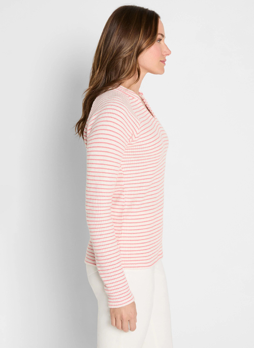 Cool, cozy, casual. Made from our super-soft scuba knit, this easy split neck is destined to be a wardrobe mainstay. As a layer or top, fall in love with unique banded collar and generous raglan sleeves. Looks great with denim or as part of more elegant outfits.