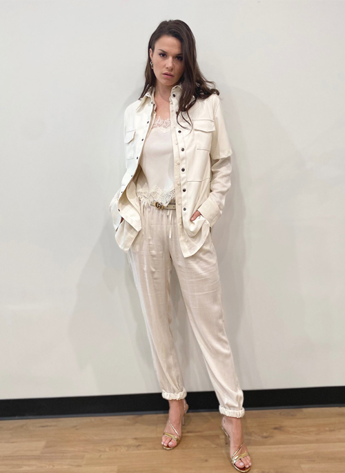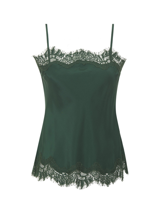 Silk camisole with adjustable straps, cut on bias, and finished with Gold Hawk's signature Coco Lace.