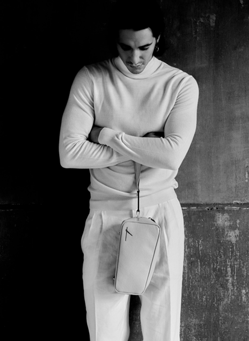 The anodized aluminum snap hook and the Alberto Olivero monogram logo in brass on the front enhance the accessory
