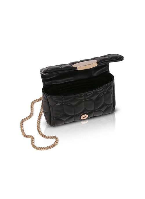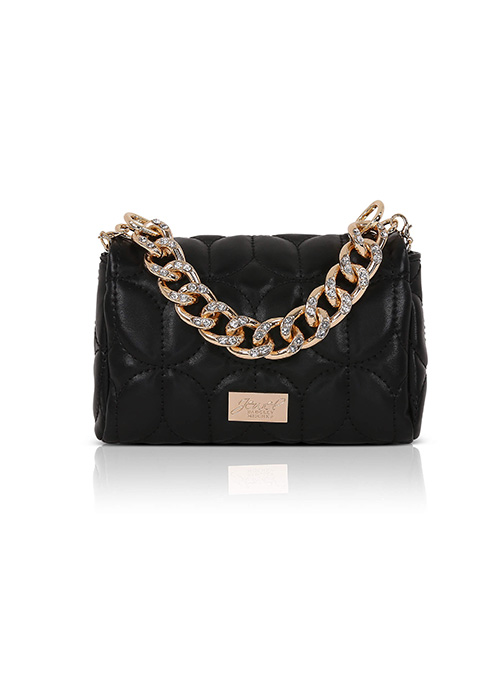 Dance the night away with the Jewel Badgley Mischka Tara Quilted Faux Leather Mini Crossbody. This small but perfect size evening bag offers hands-free convenience with its detachable 23" crossbody chain, or go glam with the crystal inset top handle chain. The custom quilt pattern on the faux leather adds a touch of chic, while the 22" drop chain ensures comfortable carrying. Inside, you'll find one card inner pocket—perfect for your essentials. This Jewel Badgley Mischka handbag transitions seamlessly from a hand held clutch to a 5" shoulder chain or a detachable crossbody, making it the perfect accessory for any occasion. This Fall 2025 must-have is the small but perfect size, measuring 6.5 inches in length, 4.5 inches in height, and 2.25 inches in depth.Details:
