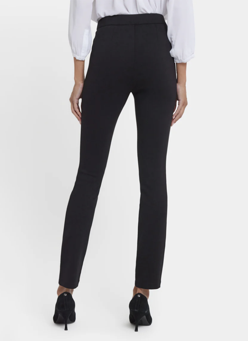 Keep your look super sleek with the Zelda Pull-On Pants by NYDJ. Their slim silhouette in ponte knit comfortably smooths and sculpts all over, while Lift Tuck® Technology uses a proprietary slimming panel with a patented criss-cross design to ensure a flattering fit. Finished with an effortless pull-on waistband and center front leg seams that open into ankle slits.